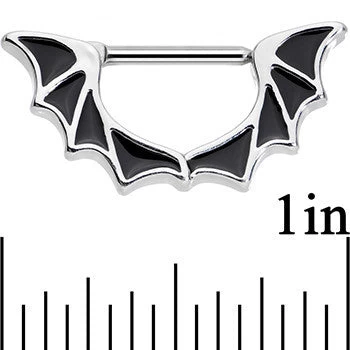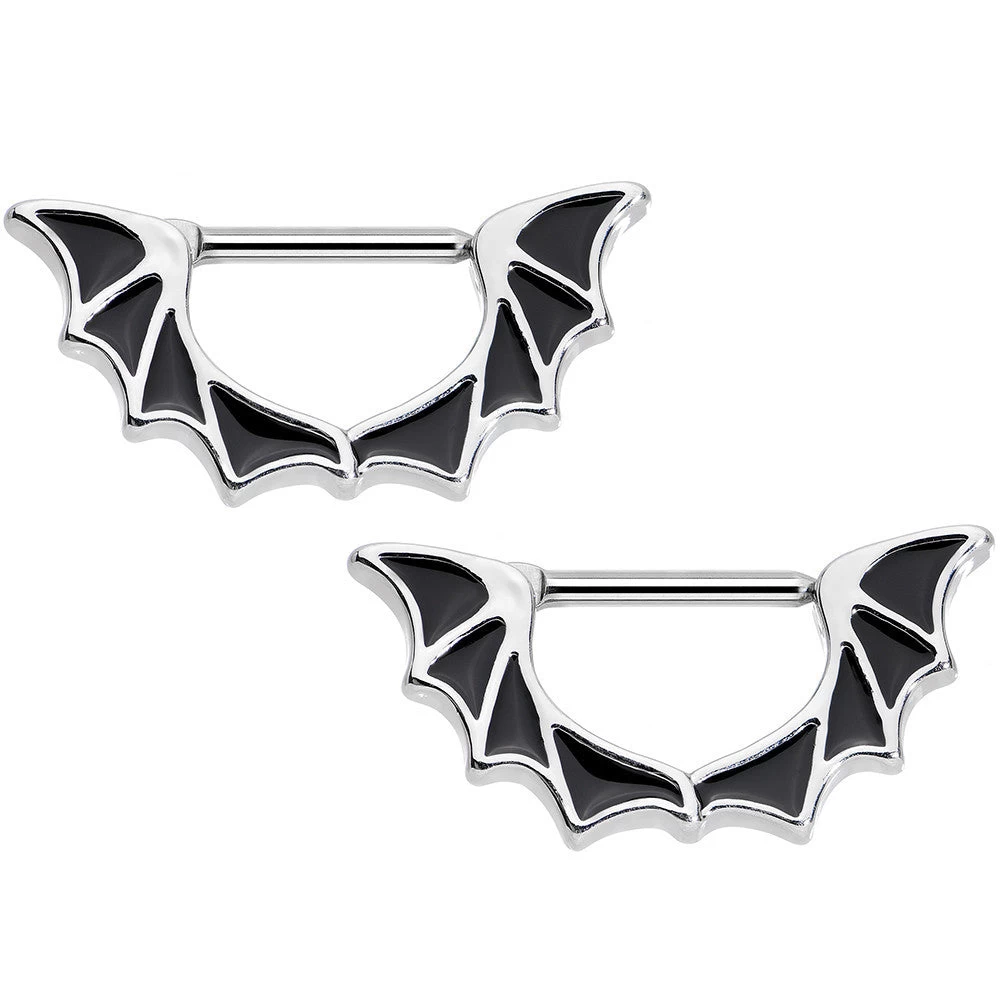 Whether you’re looking for the perfect pair of accessories for a festive Halloween night or have just feeling a little batty lately, this set of two 14 gauge nipple clickers are sure to please the nighttime loving side in you! The 12mm length hinged straight barbells used for both are made from durable 316L surgical grade stainless steel and feature black wing details along the bottom rim of the design for a look that will have the respect of all those that roam the night!