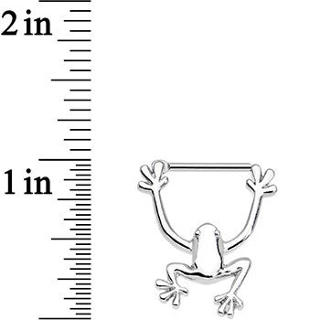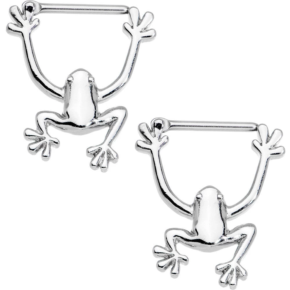 If you’ve been in search of a new look for your nipple piercing, then have we got just the thing for you! This 14 gauge nipple clicker set features a whimsical hanging frog design for the bottom rim. The 12mm length straight hinged barbells are made from durable 316L surgical grade stainless steel and provide for easy insertion and removal from your piercing.