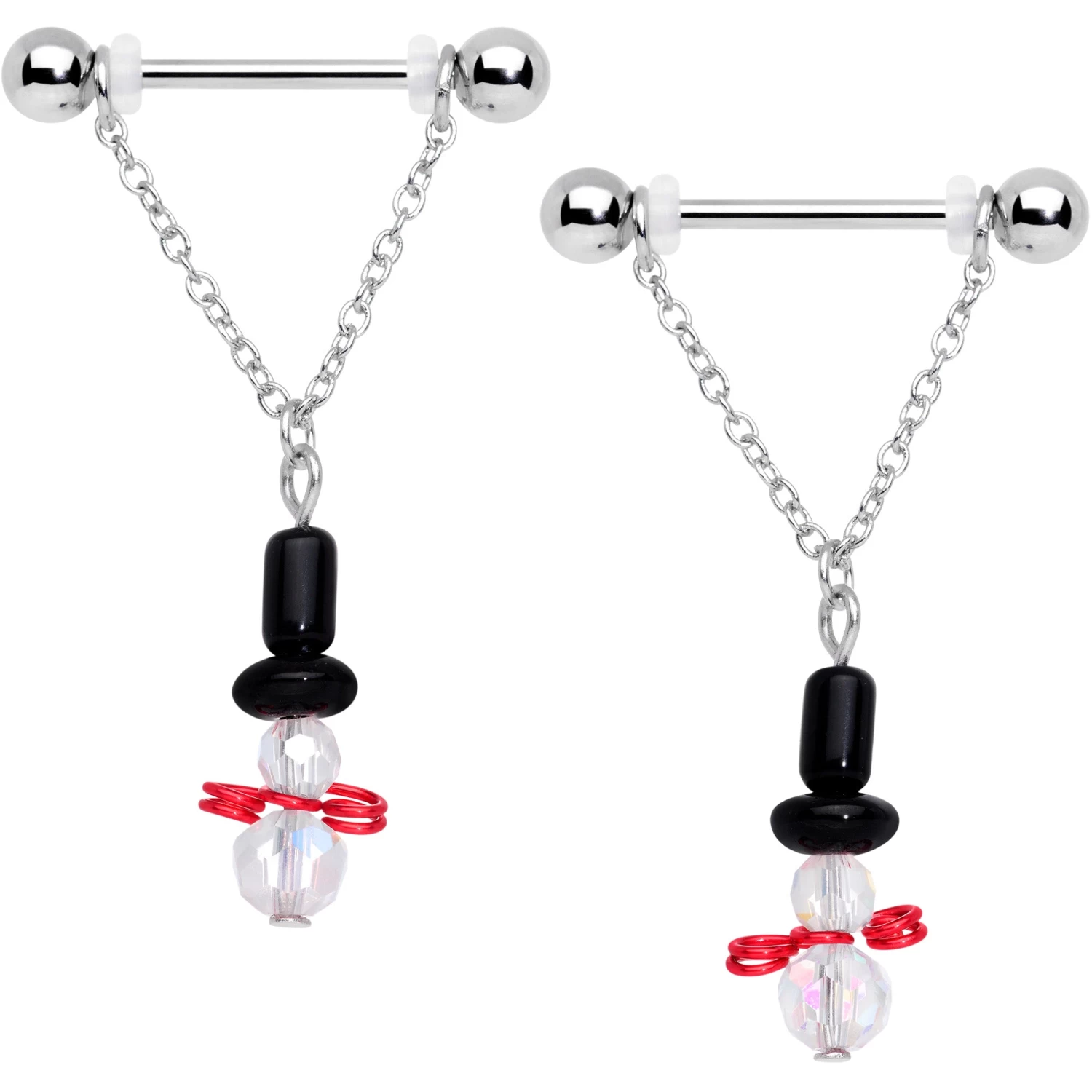 14 Gauge 11/16 Aurora Gem Snowman Christmas Dangle Nipple Ring Set