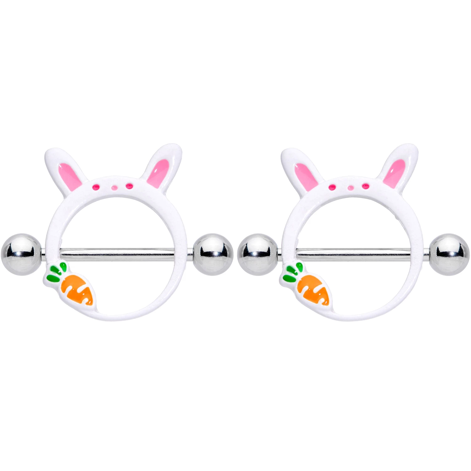 14 Gauge 9/16 Carrot White Easter Bunny Nipple Shield Set