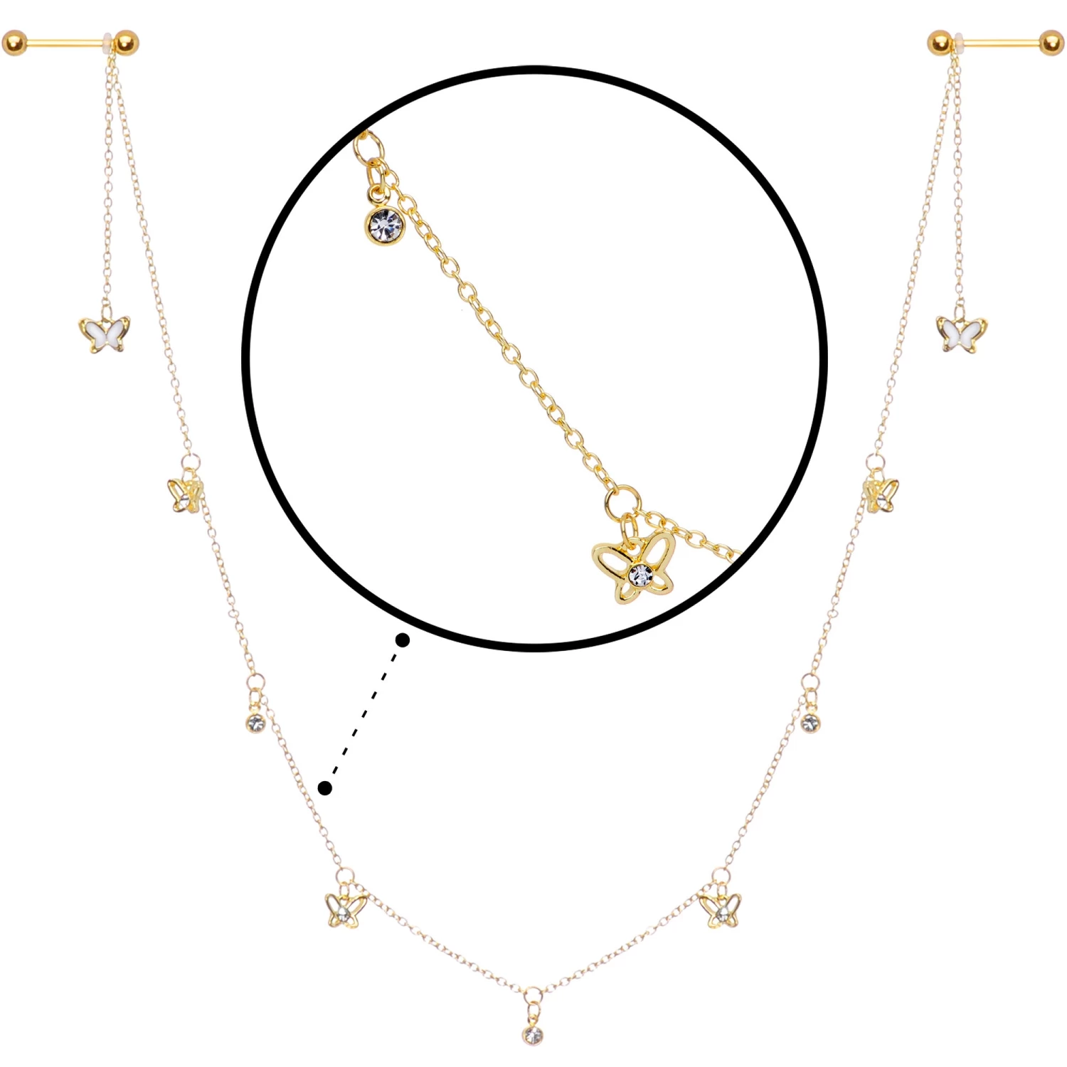 14 Gauge 9/16 Clear Gem Gold Tone Butterfly Dangle Nipple Chain