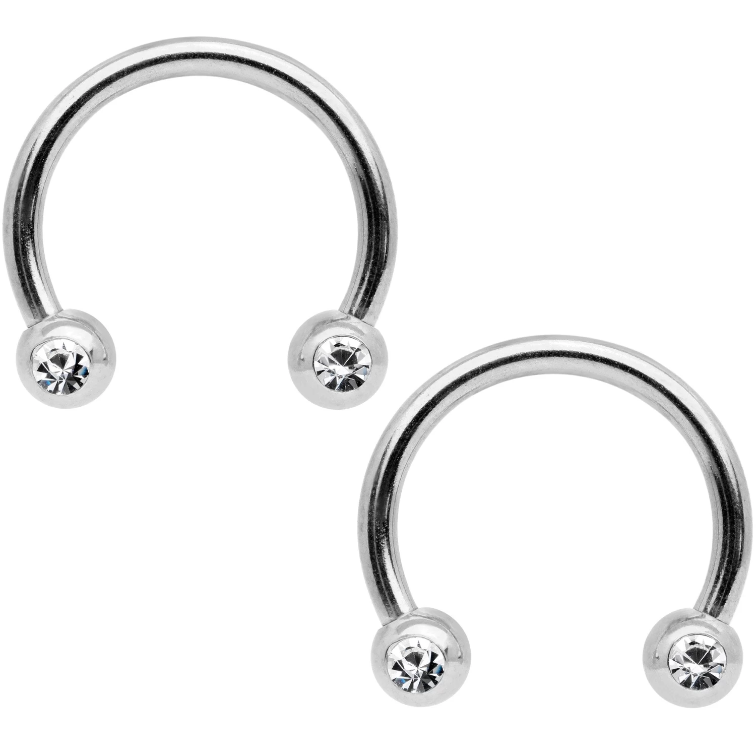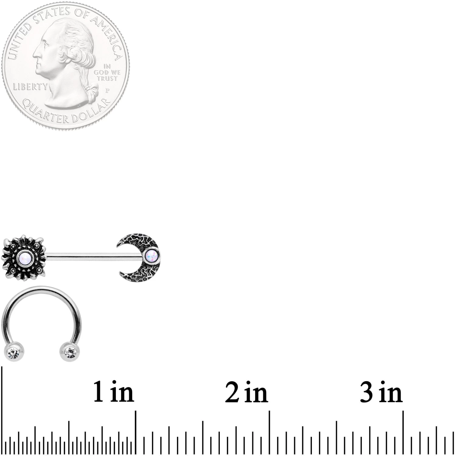 14 Gauge 9/16″ Clear Gem Sun Moon Horseshoe Barbell Nipple Ring Set