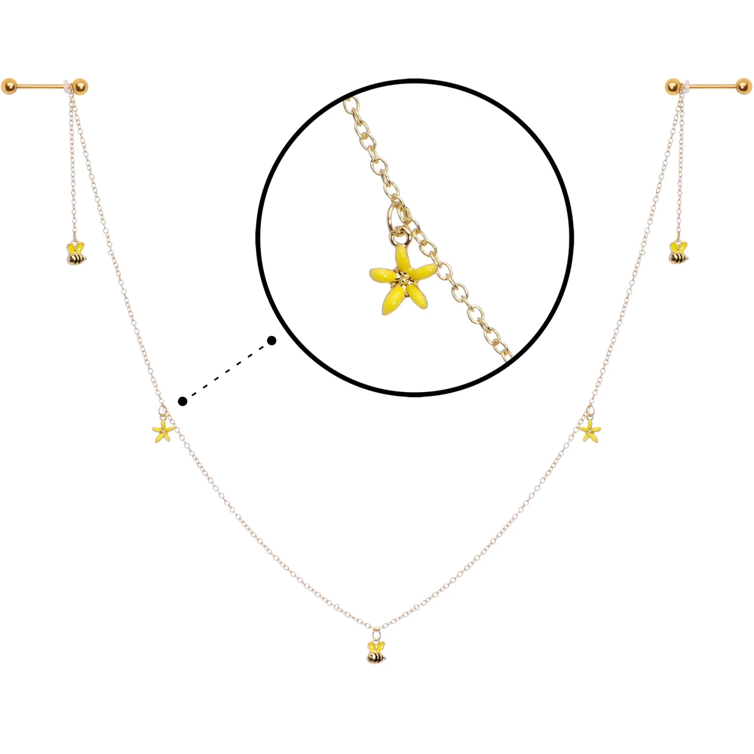 14 Gauge 9/16 Gold Tone Yellow Flower Bee Dangle Nipple Chain