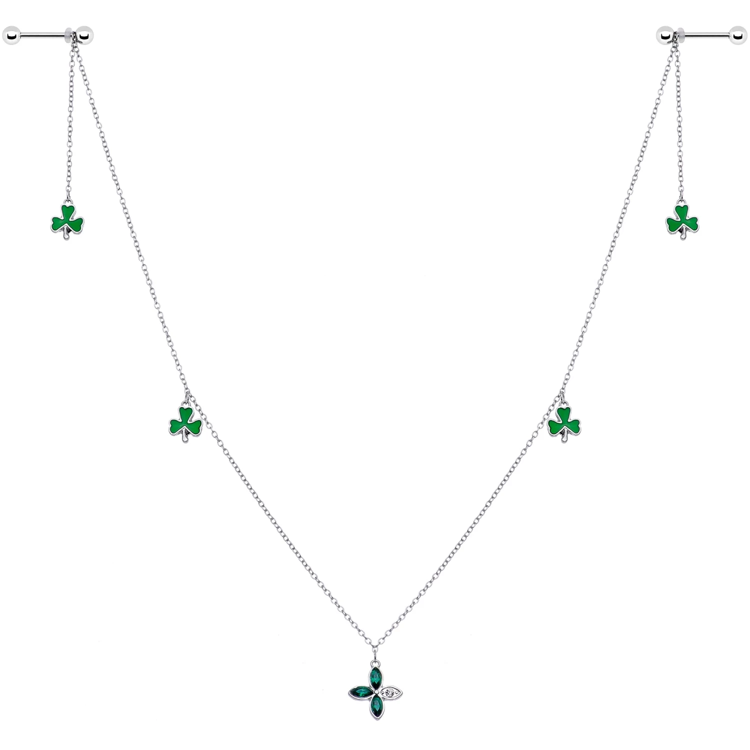 If you’re ready to get lucky this St. Patrick’s Day or any day of the year then this dangle nipple jewelry is a perfect choice. Made with 14mm durable 316L surgical grade stainless steel straight barbells, these nipple piercings feature chain dangles with green leprechaun charms. Happy St. Patty’s Day to you! Sold as a set of 2.