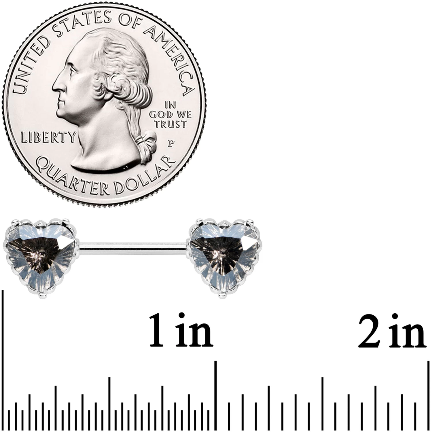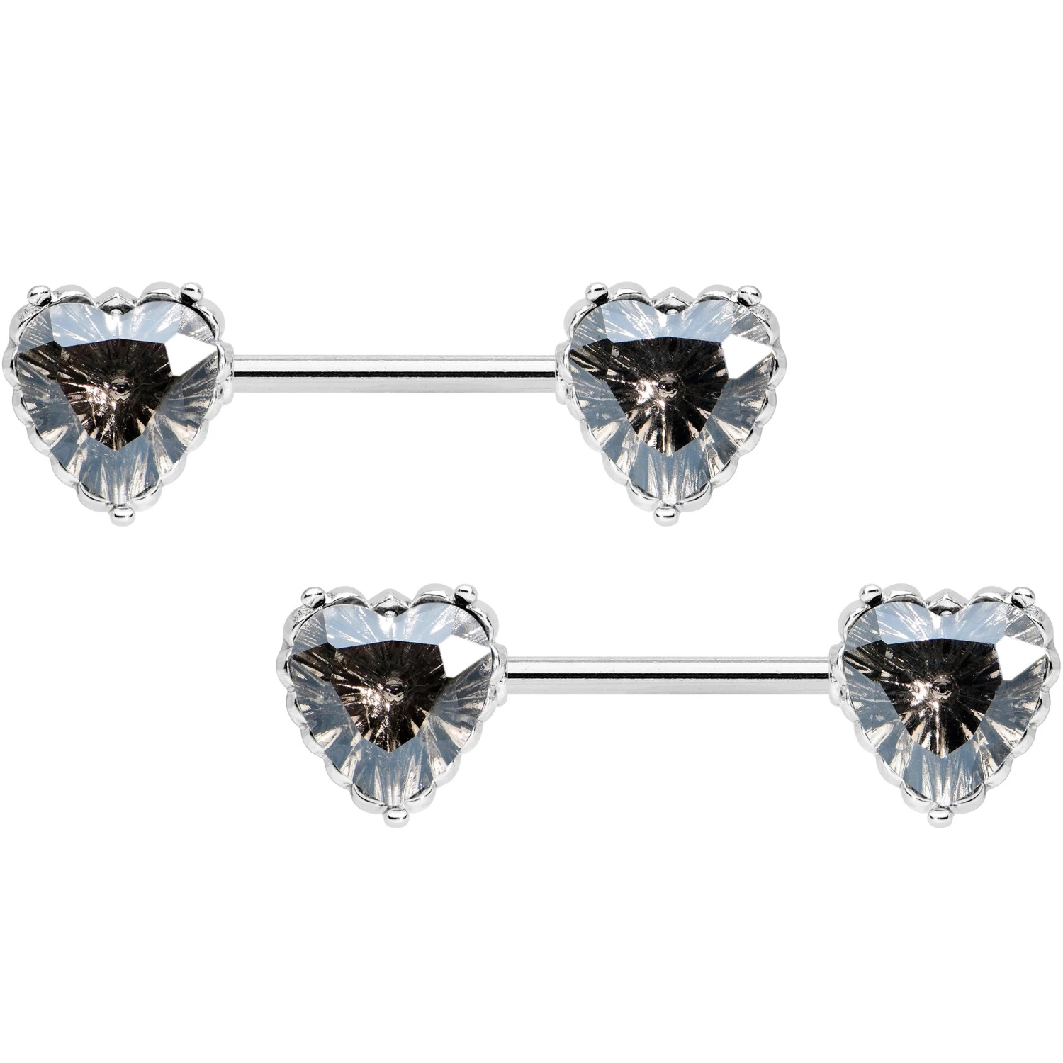 14 Gauge 9/16 Grey CZ Gem Heart Valentines Day Nipple Ring Set