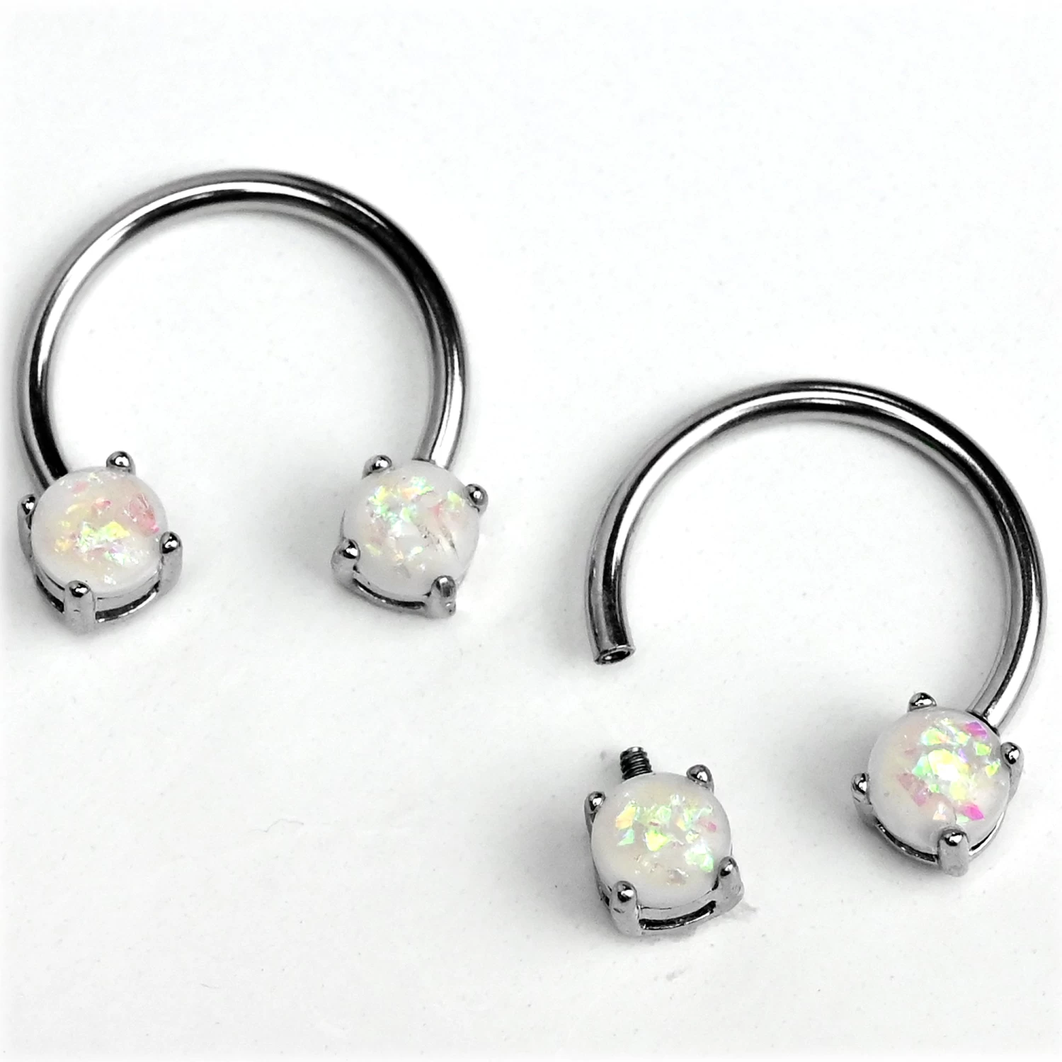 14 Gauge 9/16 White Faux Opal Internally Threaded Horseshoe Nipple Ring Set