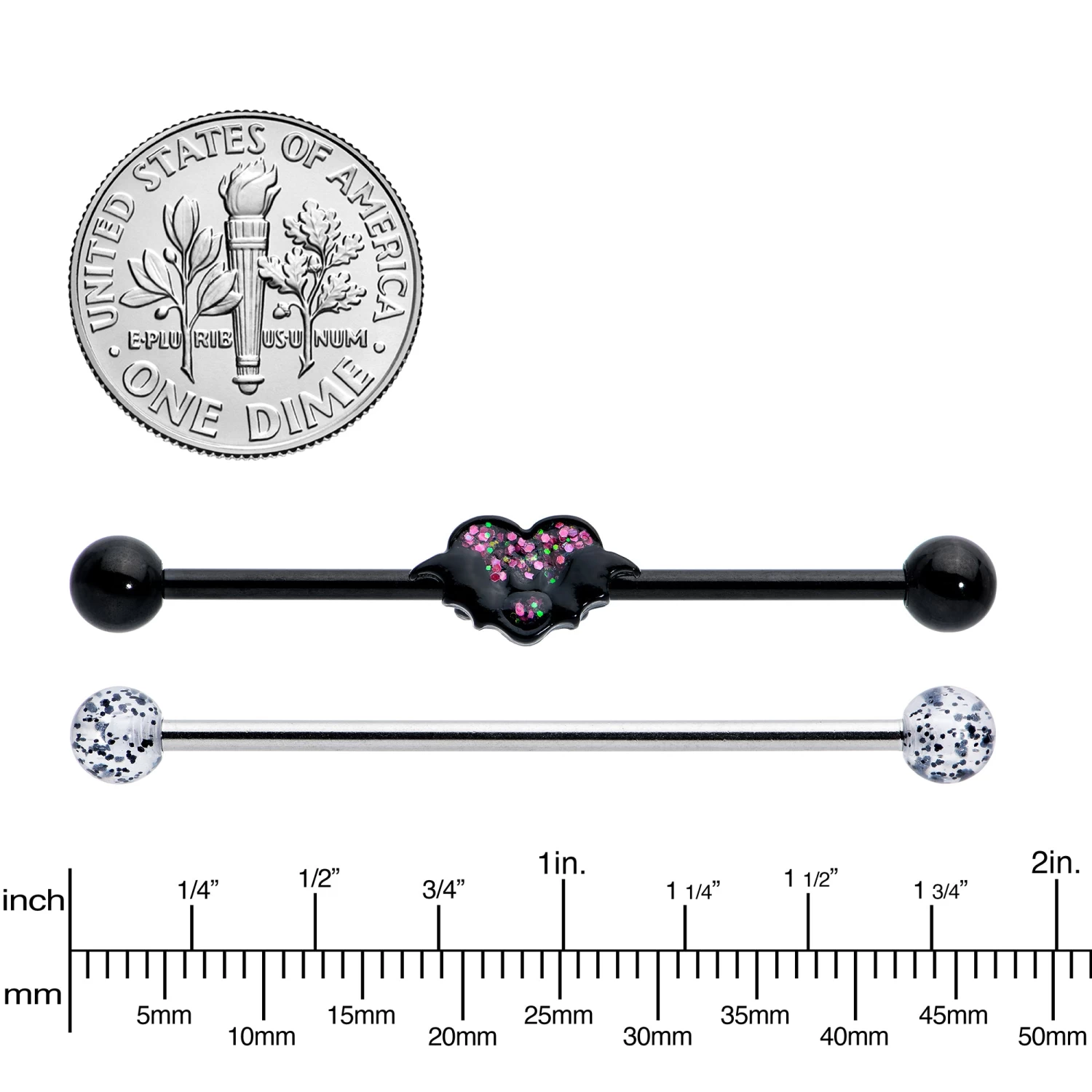 14 Gauge Black Bat Heart Halloween Clear Industrial Barbell 38mm Set of 2