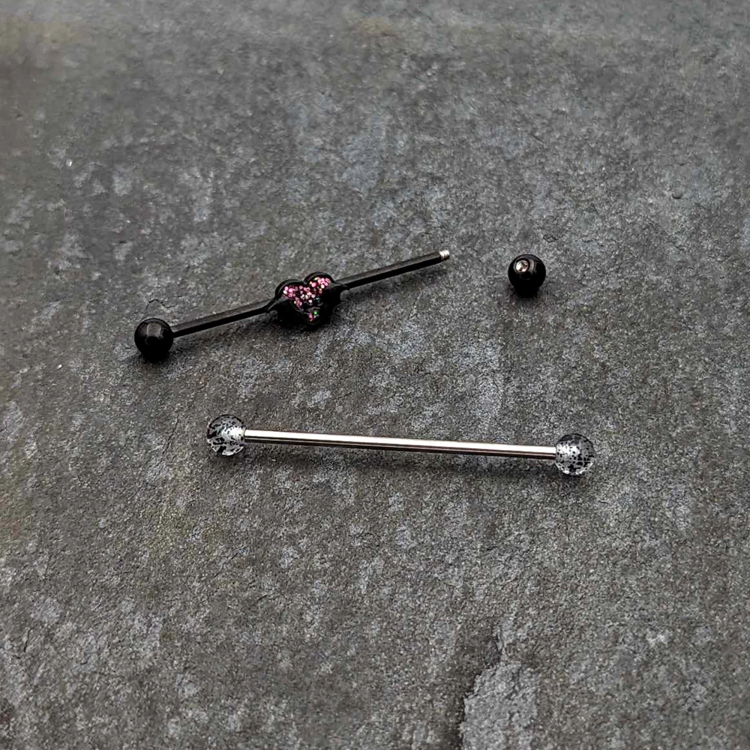 14 Gauge (1.6mm) 1 1/2″ (38mm), Black PVD over 316L Surgical Grade Stainless Steel Straight Barbell and a 316L Surgical Grade Stainless Steel Barbell, 5mm Ball Ends