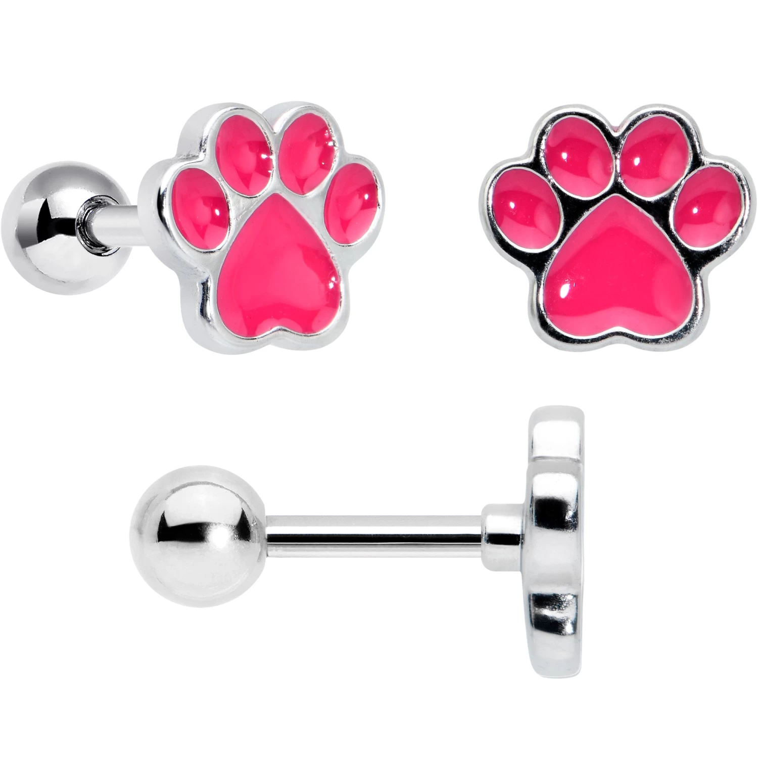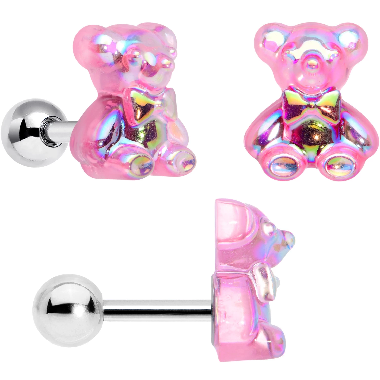 16 Gauge 1/4 Bear Pearlescent Pink Paw Cartilage Earring Set of 3
