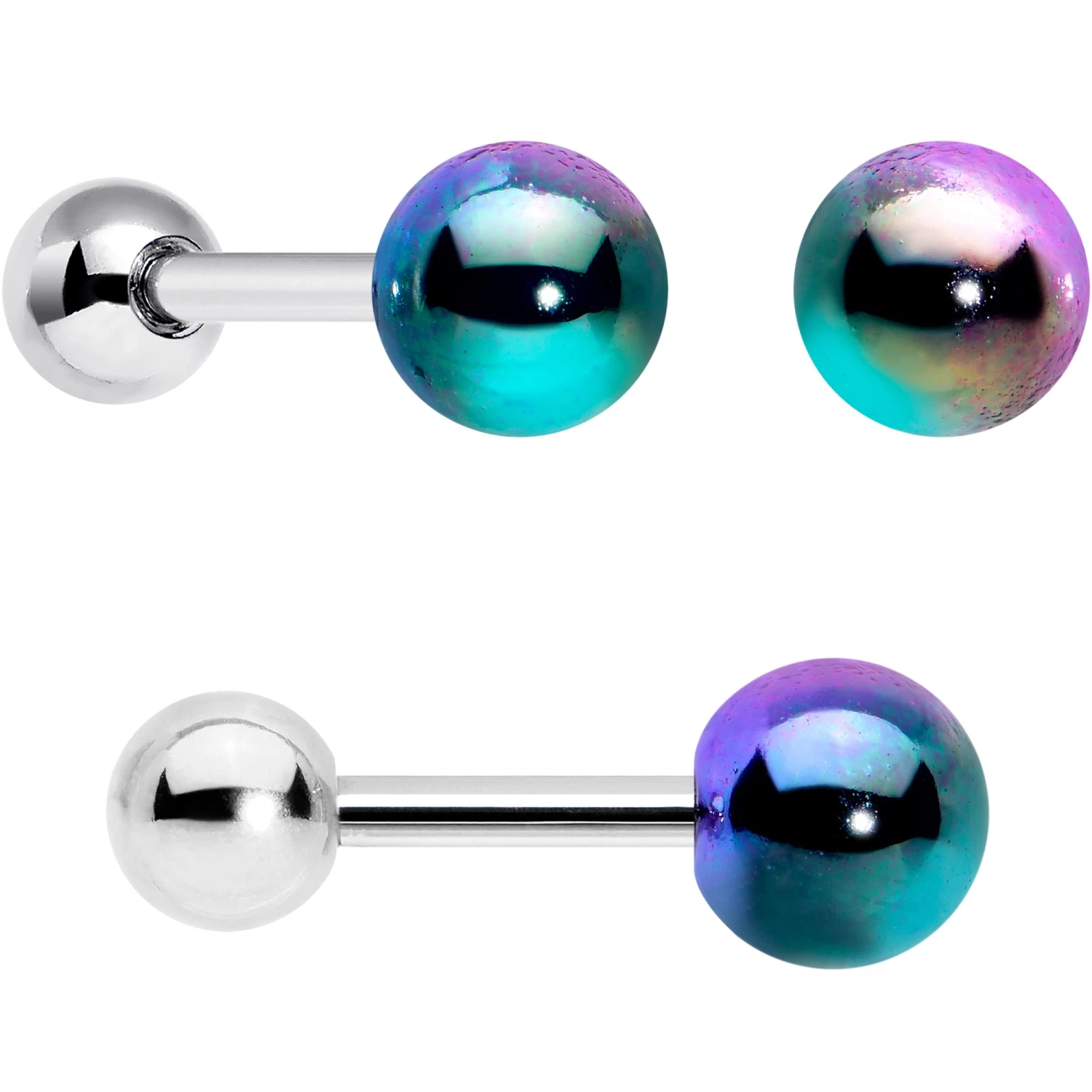 This set of 16 gauge tragus studs is almost un-bear-ably adorable! They’re made with 6mm durable 316L surgical grade stainless steel straight barbells with 4mm ball ends. The first one features a sweet little teddy bear charm with a pink pearlescent finish. The second features a green pearlescent ball end for an elegant and timeless appearance. The third one features a paw print charm inlaid in pink. You can even wear these cartilage studs in multiple piercings including tragus, helix, and some conch piercings. You’ll definitely fall in love with this cartilage jewelry! Sold as a set of three.