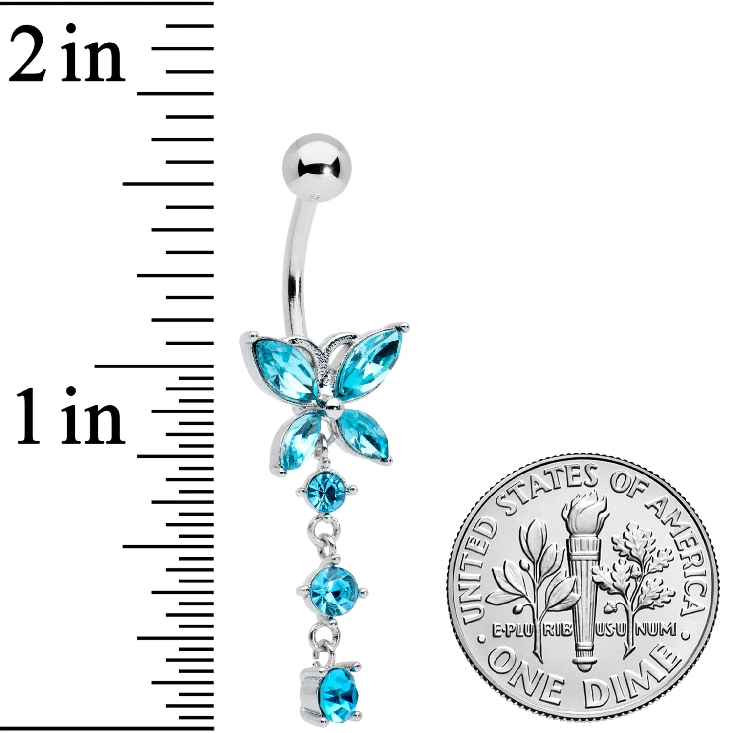 Blue CZ Gem Open Wing Butterfly Dangle Belly Ring
