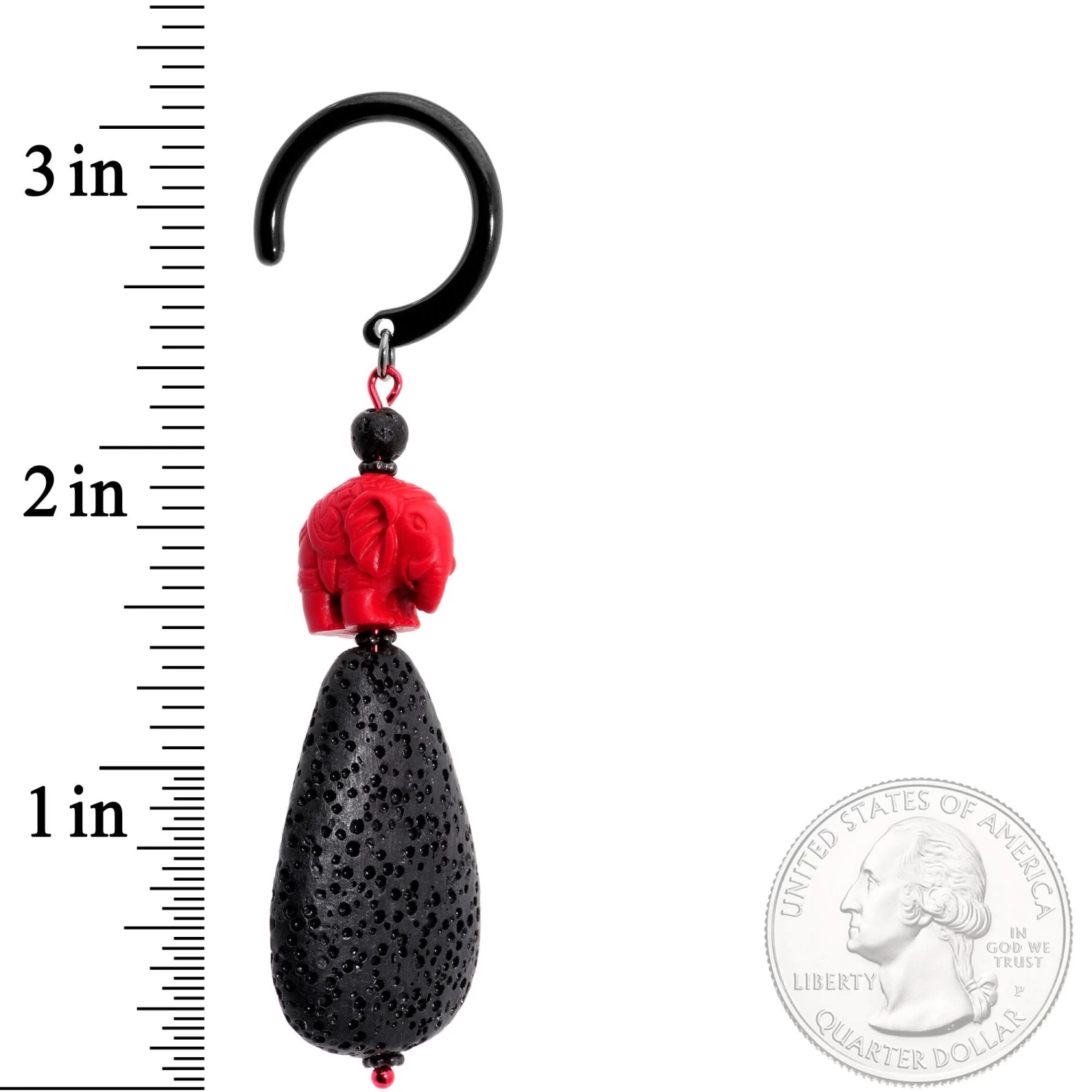 You can’t help but love the lava when it looks this good! These tunnel plug earrings are made with black titanium IP over 316L surgical grade stainless steel hook backings that require a 10 gauge minimum piercing size. These hanger plug earrings look fantastic worn alone but also look great when paired with a set of tunnel plugs and feature a large black lava stone dangle with a small matching lava stone bead at the top. Between the two is a red three-dimensional, detailed elephant bead. Each handmade ear weight has a total length of 3″ and a weight of .3oz. With so many details and such an eye-catching color scheme, these ear weights for stretched ears have a lot to lava – and they’re handmade in the USA! Sold as a set of two.