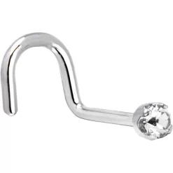 Solid 14KT White Gold (February) 1.5mm Genuine Purple Diamond Nose Ring