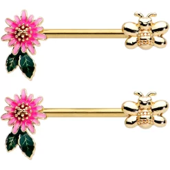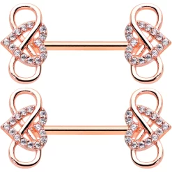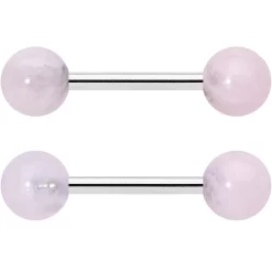 14 Gauge 1/2 Elegant Pink Rose Quartz Barbell Nipple Ring Set