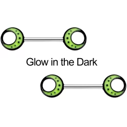 14 Gauge 9/16 Glow In The Dark Yellow Moon Barbell Nipple Ring Set