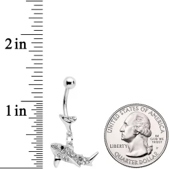 Clear Blue Gem Dolphin Heart Dangle Belly Ring