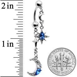 Clear Blue Gem Crescent Moon Star Double Mount Dangle Belly Ring