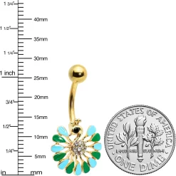 Clear Black Gem Gold Tone Pretty Peacock Belly Ring