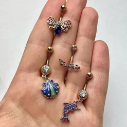 Clear Gem Baroque Butterfly Dangle Belly Ring