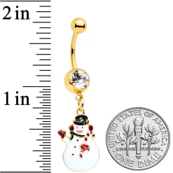 Clear Gem Gold Tone Winter Snowman Christmas Dangle Belly Ring