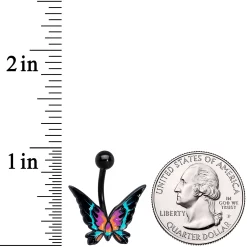 Gaby Clear CZ Gem Gold Tone Open Wing Butterfly Dangle Belly Ring