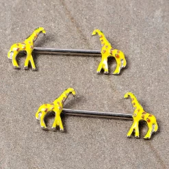14 Gauge 9/16 Brown Yellow Giraffe Barbell Nipple Ring Set