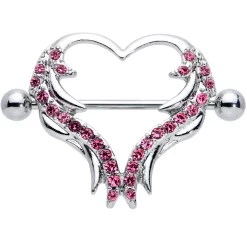 Gaby 14 Gauge 3/4 Pink Gem Rock And Roll Heart Nipple Shield Set