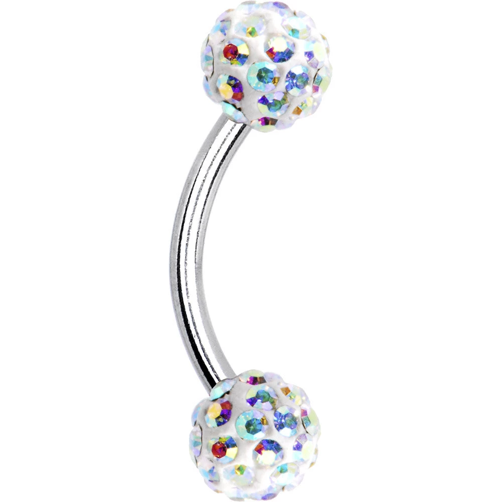 16 gauge eyebrow ring body jewelry piercing made from quality 316L surgical grade stainless steel. This crystal eyebrow ring has two 4mm Ferido Balls created with crystals.