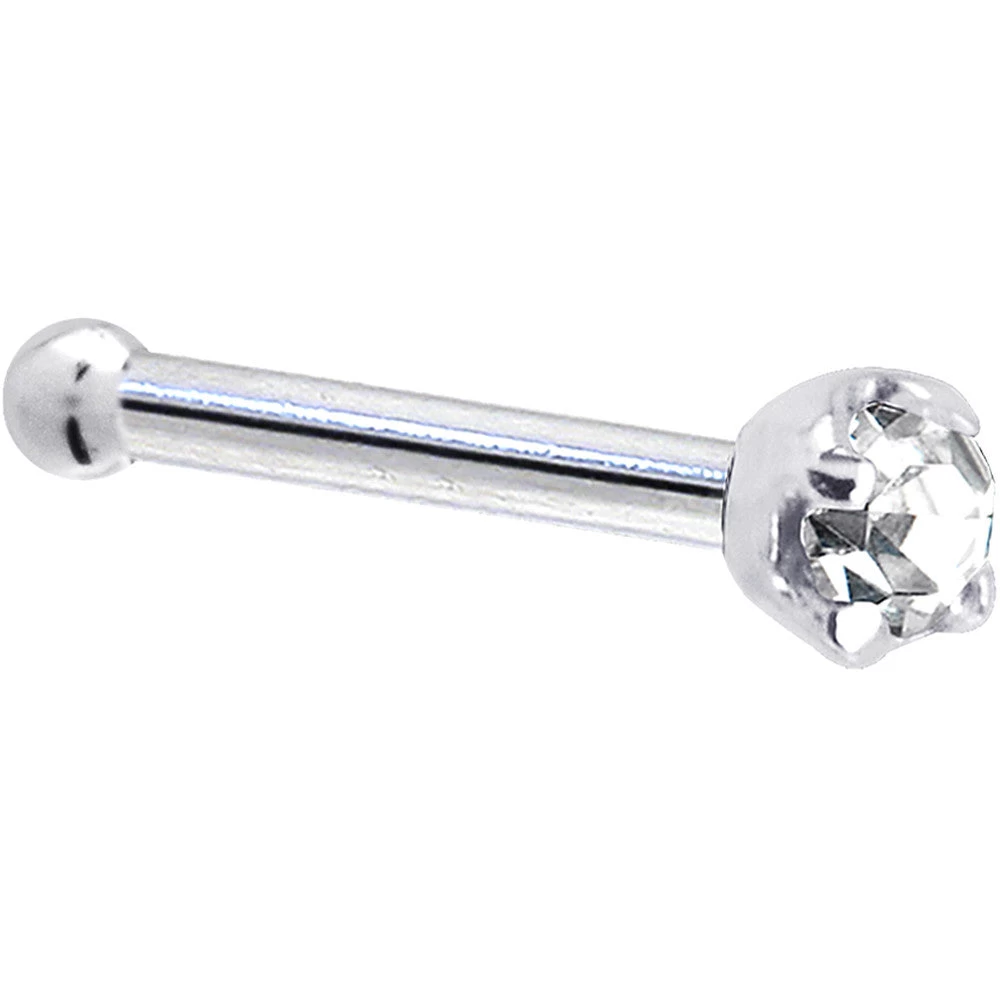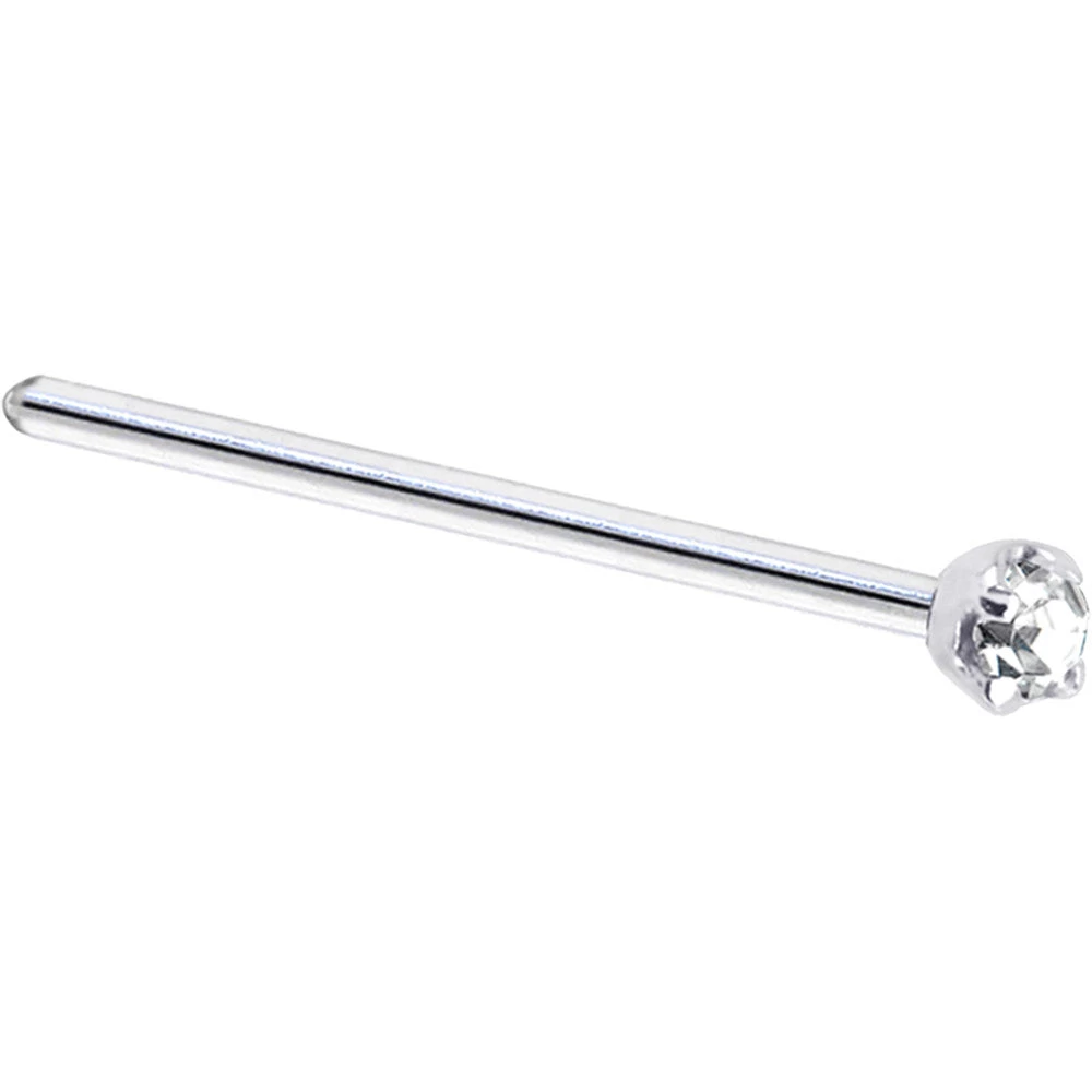 Solid 14KTWhite Gold 2mm Clear Cubic Zirconia Nose Ring