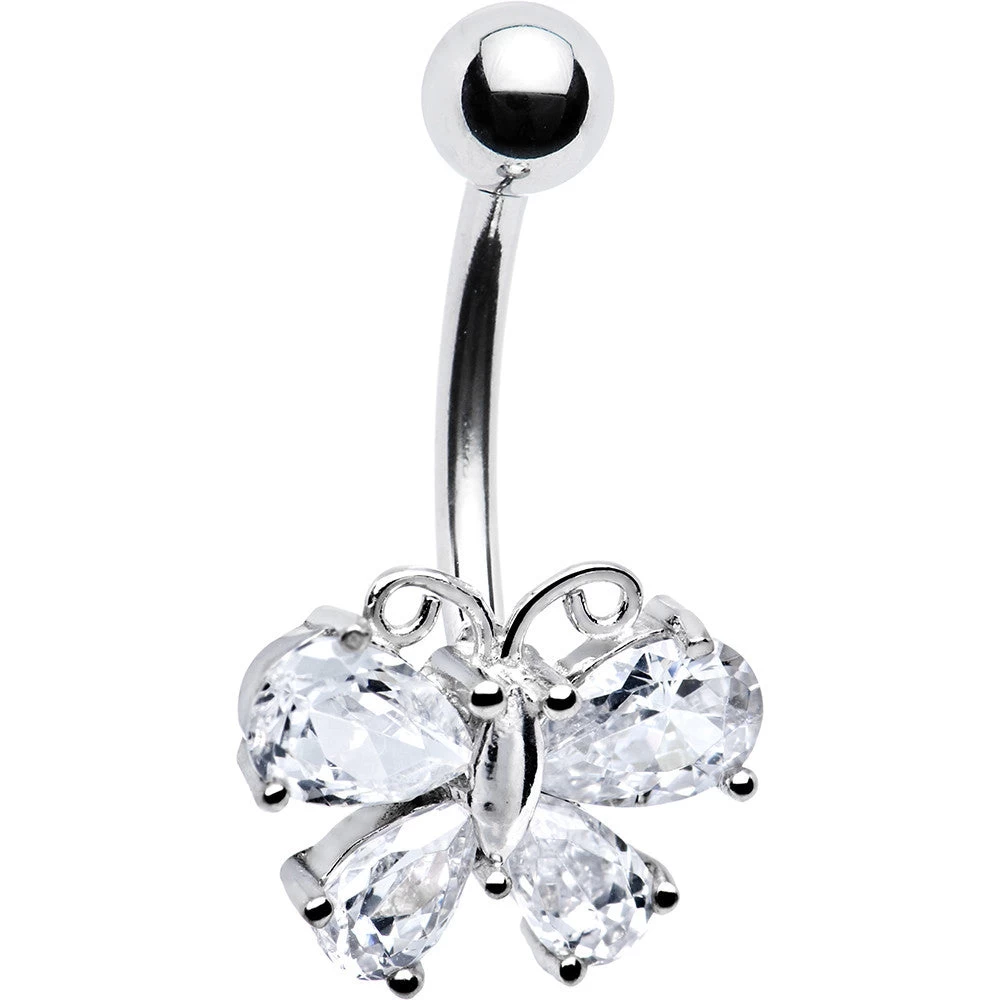 An expression of beauty can be made with this solid gold butterfly belly ring. Classic solid gold belly ring. High polish 14 karat gold Body Jewelry./P>