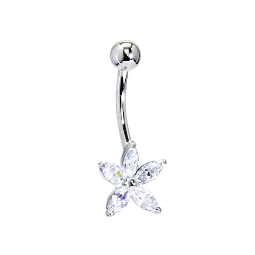 Flower Belly Ring. 14KT Solid Gold Belly Ring. Solid Gold Body Jewelry with Genuine Cubic Zirconia