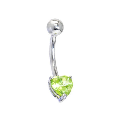 Precious Stone Heart Belly Ring. 14KT Solid Gold Belly Ring. Genuine Peridot Belly Ring. A perfect heart shaped August birthstone belly ring for any occasion. Add Body Candy body piercing jewelry at wholesale prices to your collection today!