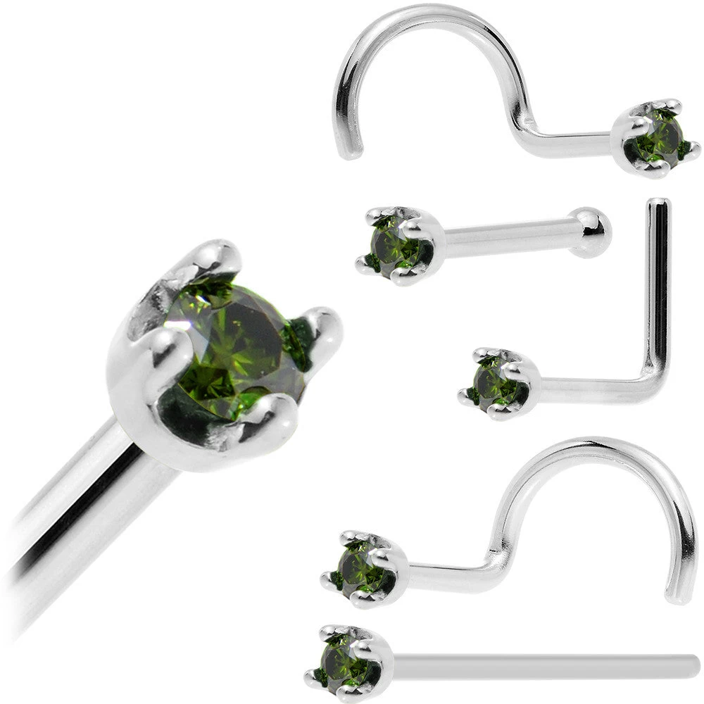 Solid 14KT White Gold 1.5mm Genuine Green Diamond Nose Ring