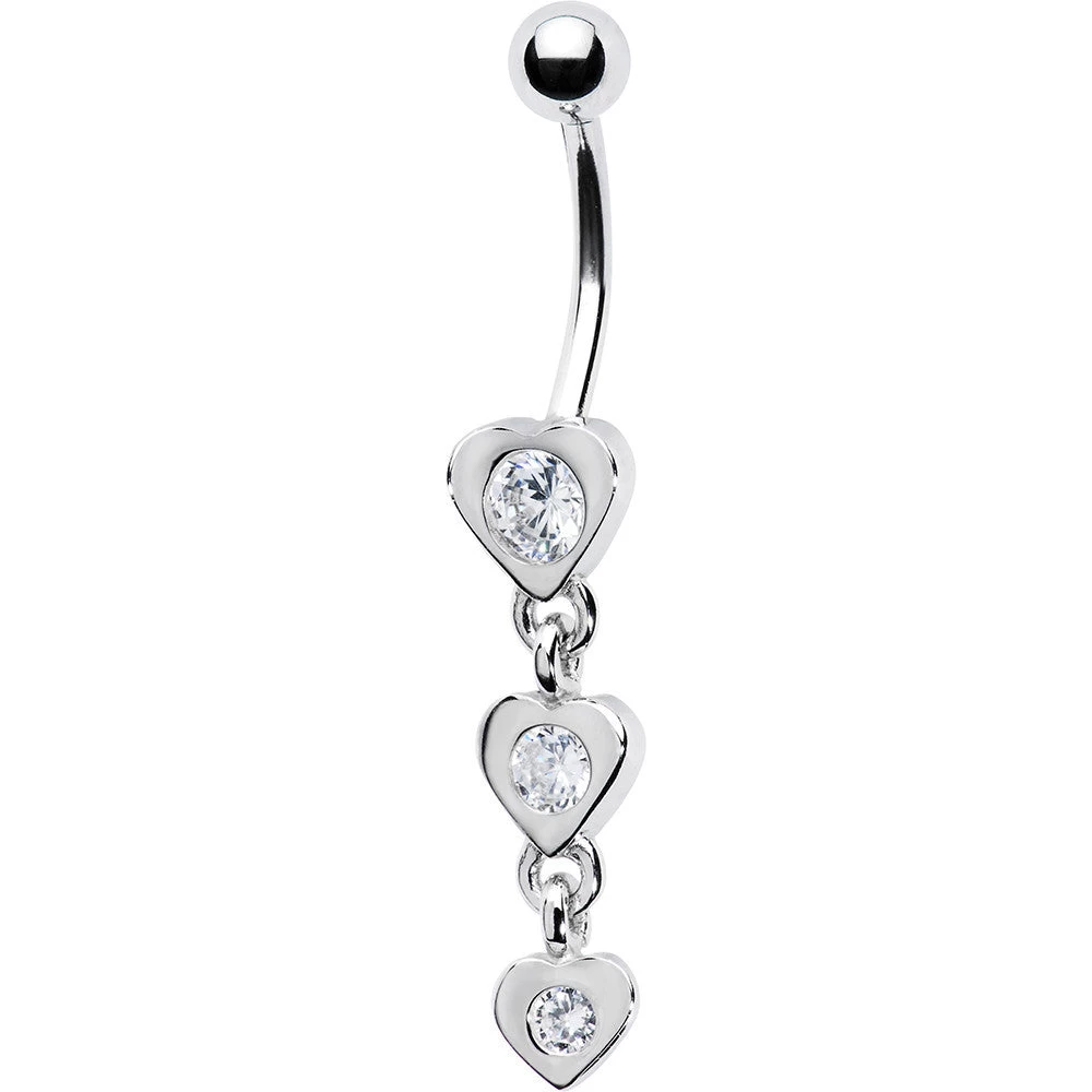 A remarkable solid gold heart belly ring with brilliant shine. Sparkling cubic zirconia belly ring. High polish 14 karat gold Body Jewelry./P>