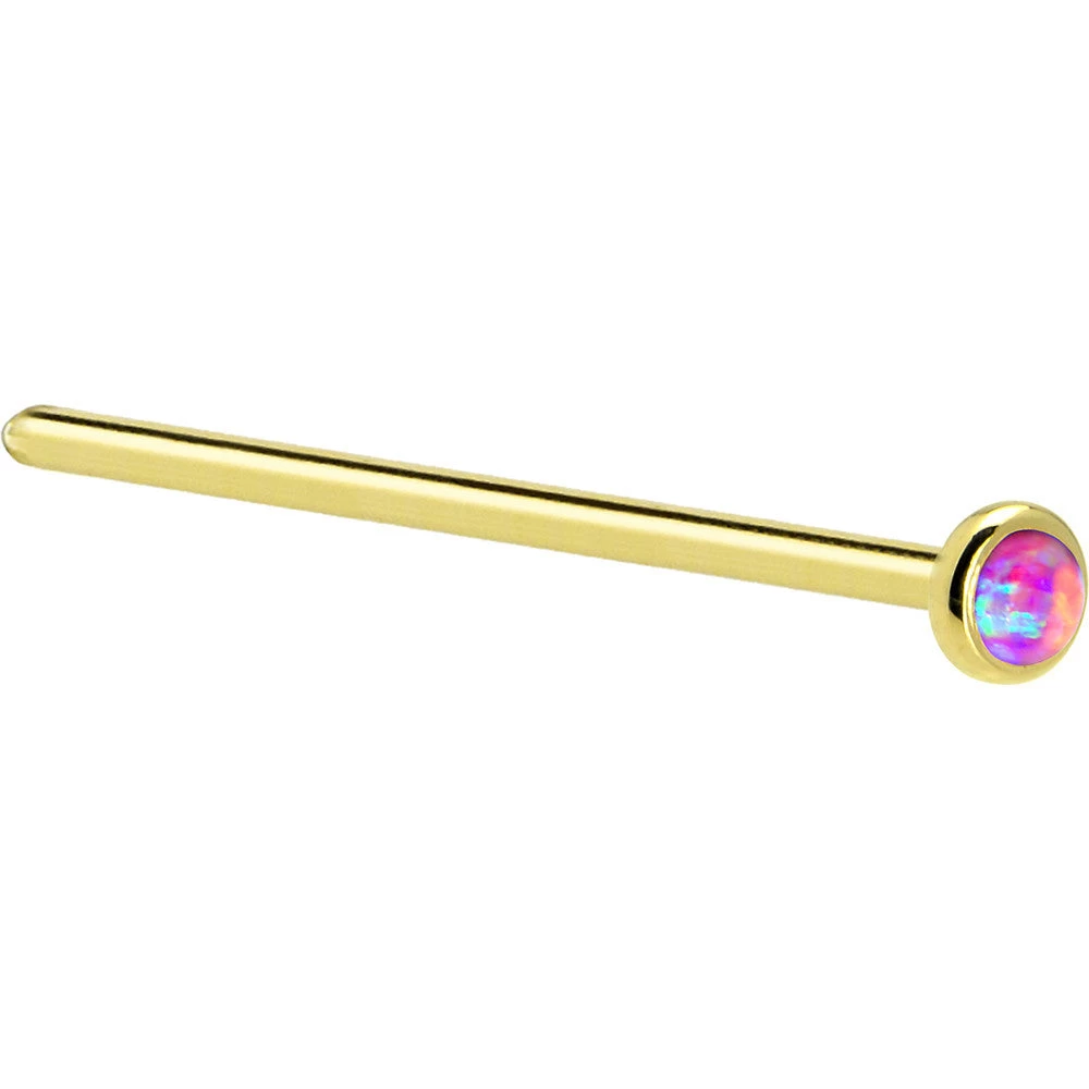 Synthetic opalnose ring. Artisan handmade 14ktyellow goldnose ringwith acup set opal. Made in USA factory direct.