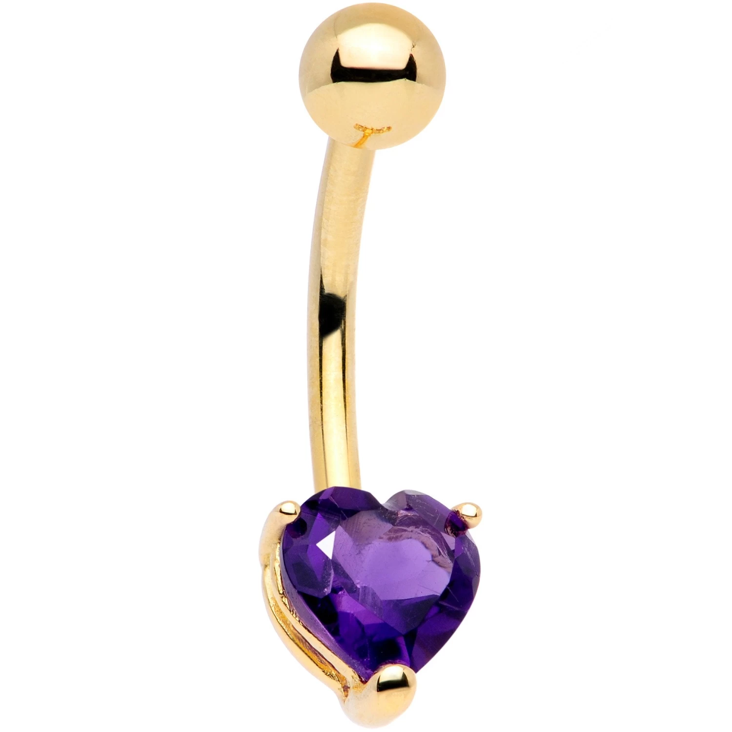 Precious stone belly ring. This natural amethyst heart belly button ring features a solid gold 14k curved barbell with a prong-set amethyst heart-shaped stone. Please note that this is a natural gemstone and there may be color variances from image displayed.