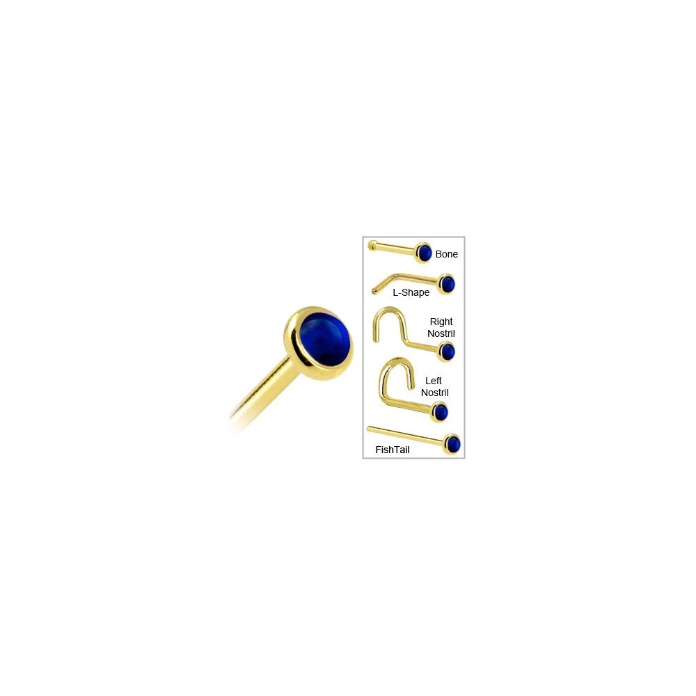 Genuine sapphire nose ring. Artisan handmade 14kt yellow gold nose ring with a bezel cup set genuine sapphire. Made in USA factory direct.