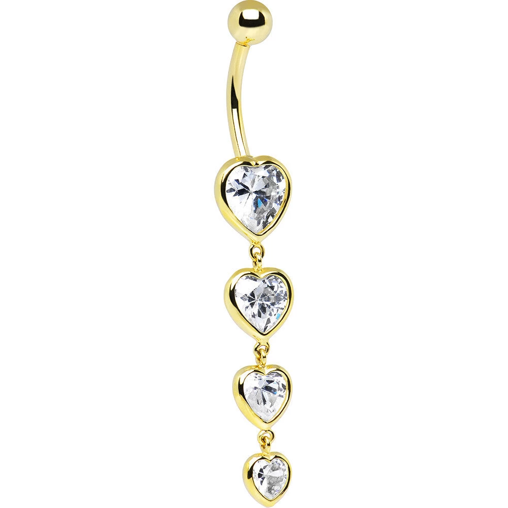 Endlessly sparkling solid gold heart belly ring. Cubic zirconia belly ring. High polish 14 karat gold Body Jewelry./P>