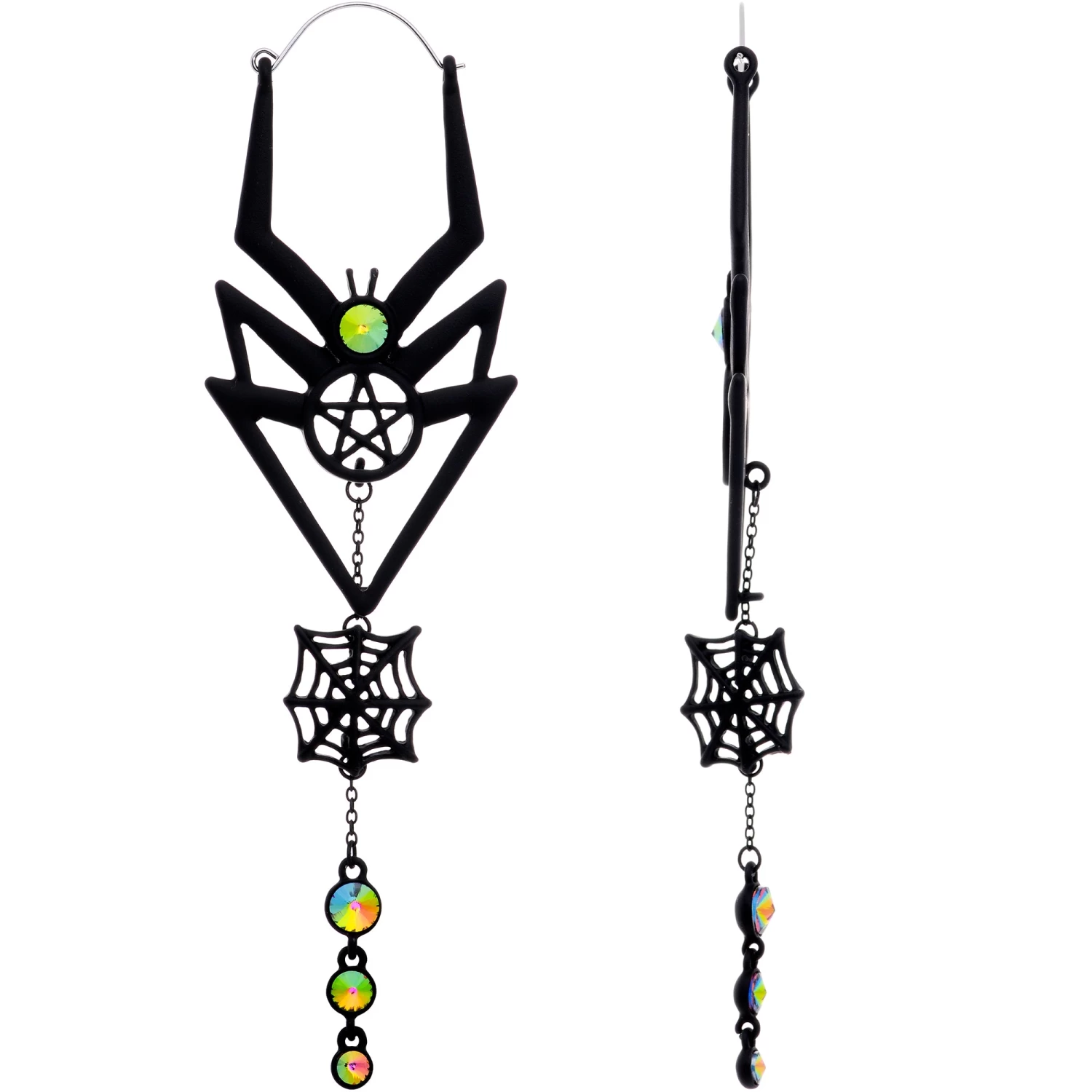 Vitrail Gem Black Spider Pentagram Dangle Tunnel Plug Earrings