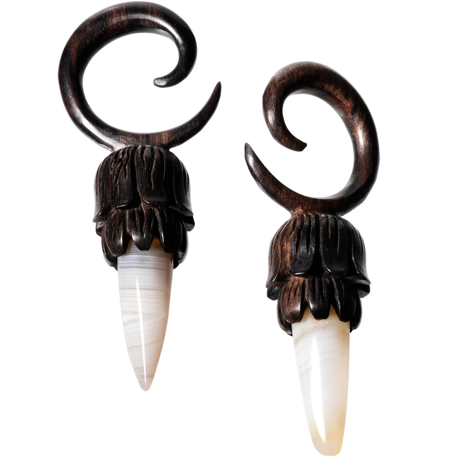 White Stone Iron Wood Tribal Spiral Taper Set 5mm to 8mm